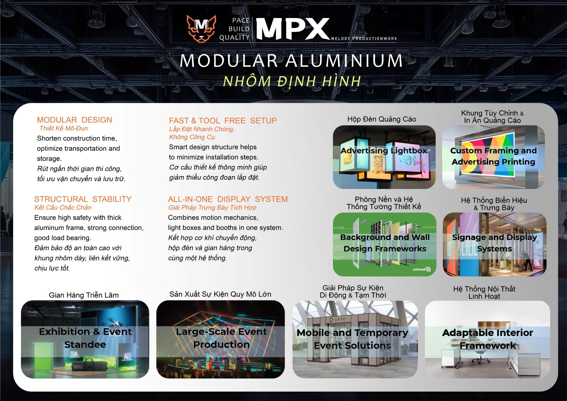 MPX LightCube là hệ hộp đèn định hình 4–6 mặt, thiết kế dưới dạng khối lập phương hoặc trụ đứng. Sản phẩm tạo hiệu ứng ánh sáng toàn diện từ mọi phía, lý tưởng cho việc trưng bày logo, sản phẩm hoặc làm điểm nhấn nhận diện trong sự kiện và không gian thương hiệu.